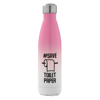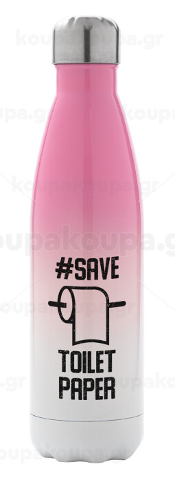 Save toilet Paper, Μεταλλικό παγούρι θερμός Ροζ/Λευκό (Stainless steel), διπλού τοιχώματος, 500ml