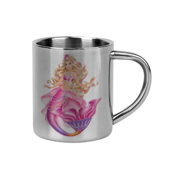 Barbie γοργόνα , Μεταλλικό παγούρι θερμός Ροζ/Λευκό (Stainless steel), διπλού τοιχώματος, 500ml