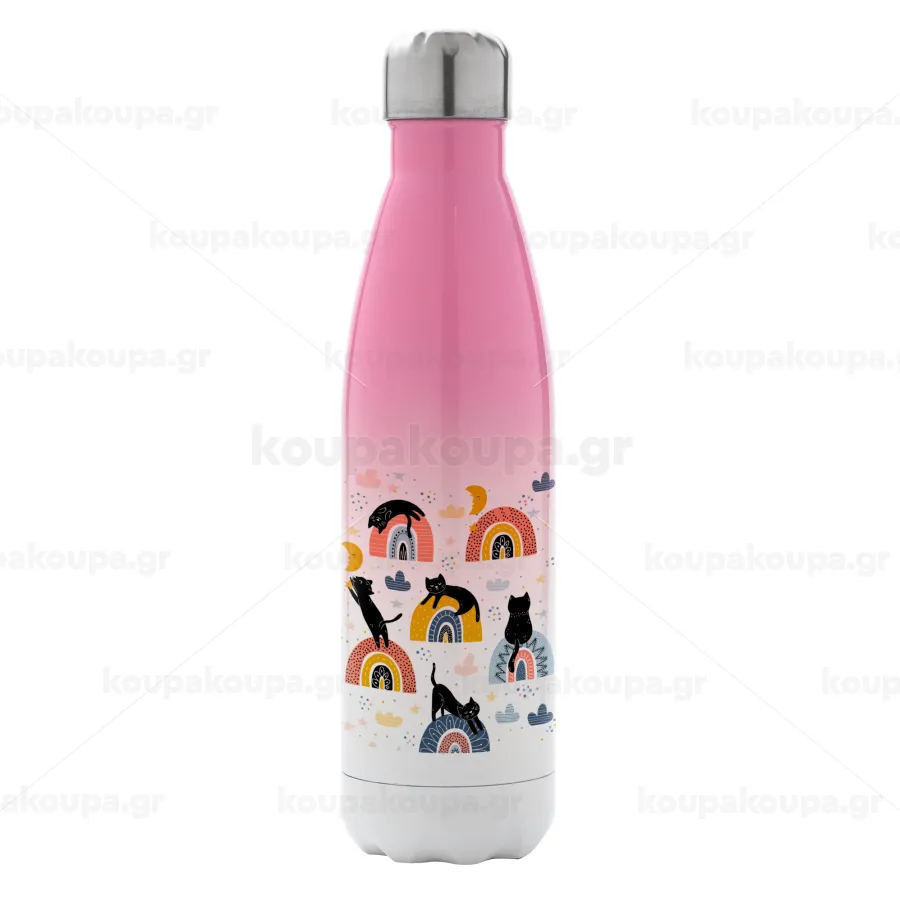 Γατούλες, Μεταλλικό παγούρι θερμός Ροζ/Λευκό (Stainless steel), διπλού τοιχώματος, 500ml