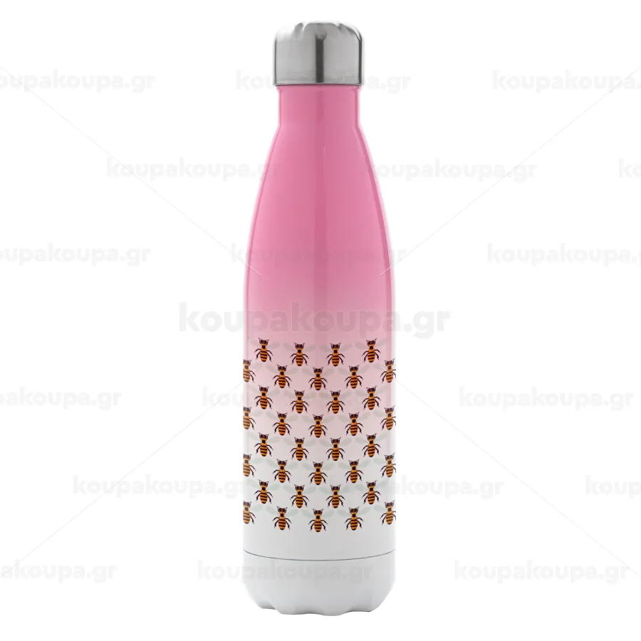 Μελισσούλες, Μεταλλικό παγούρι θερμός Ροζ/Λευκό (Stainless steel), διπλού τοιχώματος, 500ml