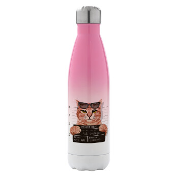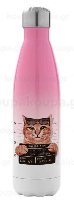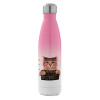 Cool cat, Μεταλλικό παγούρι θερμός Ροζ/Λευκό (Stainless steel), διπλού τοιχώματος, 500ml