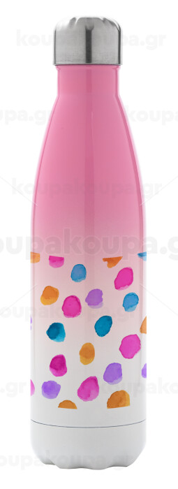 Watercolor dots, Μεταλλικό παγούρι θερμός Ροζ/Λευκό (Stainless steel), διπλού τοιχώματος, 500ml