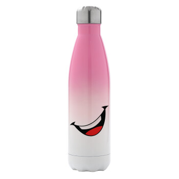 Φατσούλα γελάω!!!, Μεταλλικό παγούρι θερμός Ροζ/Λευκό (Stainless steel), διπλού τοιχώματος, 500ml