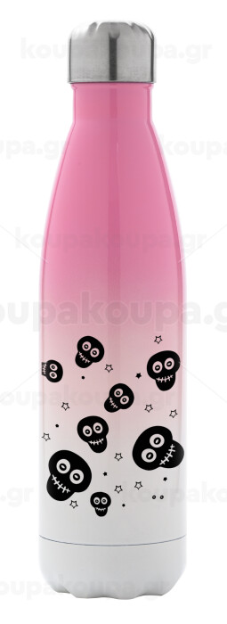 Skull avatar, Μεταλλικό παγούρι θερμός Ροζ/Λευκό (Stainless steel), διπλού τοιχώματος, 500ml