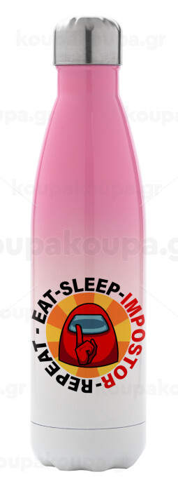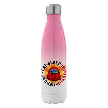 Among US Eat Sleep Repeat Impostor, Μεταλλικό παγούρι θερμός Ροζ/Λευκό (Stainless steel), διπλού τοιχώματος, 500ml