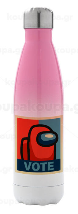 Among US VOTE, Μεταλλικό παγούρι θερμός Ροζ/Λευκό (Stainless steel), διπλού τοιχώματος, 500ml