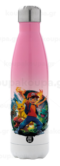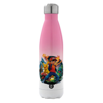 Ash Ketchum & Pikachu, Μεταλλικό παγούρι θερμός Ροζ/Λευκό (Stainless steel), διπλού τοιχώματος, 500ml