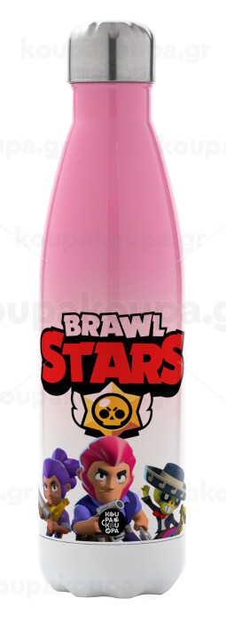 Brawl Stars Blue, Μεταλλικό παγούρι θερμός Ροζ/Λευκό (Stainless steel), διπλού τοιχώματος, 500ml