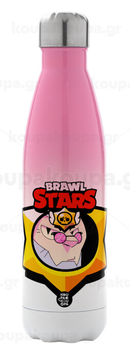 Brawl Stars Byron, Μεταλλικό παγούρι θερμός Ροζ/Λευκό (Stainless steel), διπλού τοιχώματος, 500ml