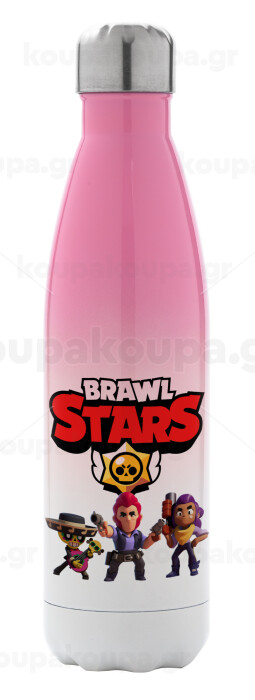 Brawl Stars Desert, Μεταλλικό παγούρι θερμός Ροζ/Λευκό (Stainless steel), διπλού τοιχώματος, 500ml