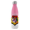 Brawl Stars El primo, Μεταλλικό παγούρι θερμός Ροζ/Λευκό (Stainless steel), διπλού τοιχώματος, 500ml