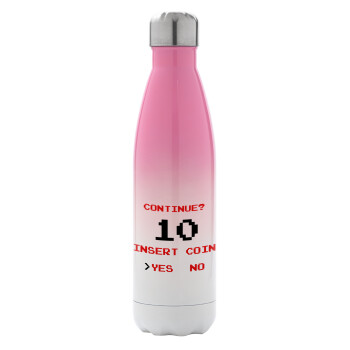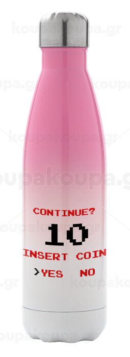 Continue? YES - NO, Μεταλλικό παγούρι θερμός Ροζ/Λευκό (Stainless steel), διπλού τοιχώματος, 500ml