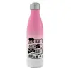 Eat Sleep Game Repeat, Μεταλλικό παγούρι θερμός Ροζ/Λευκό (Stainless steel), διπλού τοιχώματος, 500ml