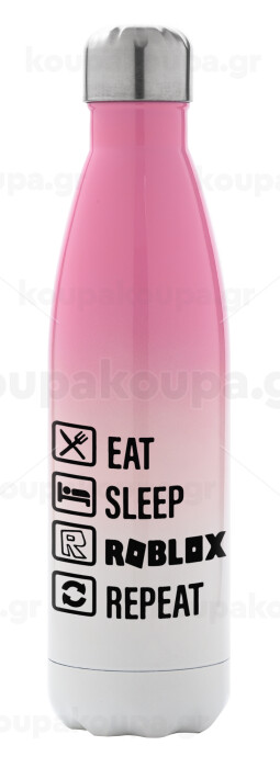 Eat, Sleep, Roblox, Repeat, Μεταλλικό παγούρι θερμός Ροζ/Λευκό (Stainless steel), διπλού τοιχώματος, 500ml