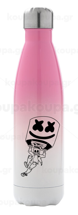 Fortnite Marshmello, Μεταλλικό παγούρι θερμός Ροζ/Λευκό (Stainless steel), διπλού τοιχώματος, 500ml