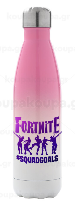 Fortnite #squadgoals, Μεταλλικό παγούρι θερμός Ροζ/Λευκό (Stainless steel), διπλού τοιχώματος, 500ml