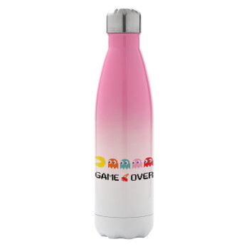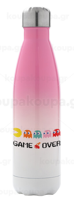 GAME OVER pac-man, Μεταλλικό παγούρι θερμός Ροζ/Λευκό (Stainless steel), διπλού τοιχώματος, 500ml