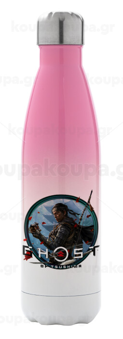 Ghost of Tsushima, Μεταλλικό παγούρι θερμός Ροζ/Λευκό (Stainless steel), διπλού τοιχώματος, 500ml