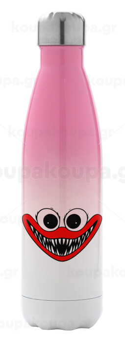 Huggy wuggy, Μεταλλικό παγούρι θερμός Ροζ/Λευκό (Stainless steel), διπλού τοιχώματος, 500ml