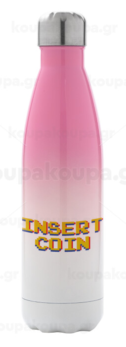 Insert coin!!!, Μεταλλικό παγούρι θερμός Ροζ/Λευκό (Stainless steel), διπλού τοιχώματος, 500ml