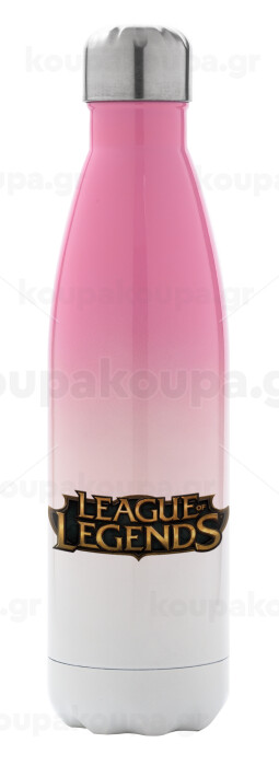 League of Legends LoL, Μεταλλικό παγούρι θερμός Ροζ/Λευκό (Stainless steel), διπλού τοιχώματος, 500ml