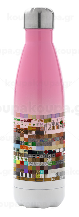 Minecraft blocks, Μεταλλικό παγούρι θερμός Ροζ/Λευκό (Stainless steel), διπλού τοιχώματος, 500ml