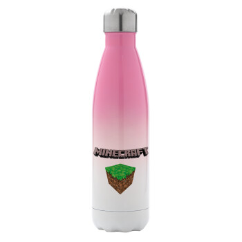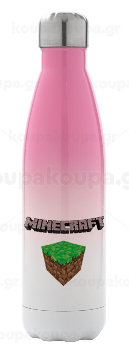 Minecraft dirt, Μεταλλικό παγούρι θερμός Ροζ/Λευκό (Stainless steel), διπλού τοιχώματος, 500ml