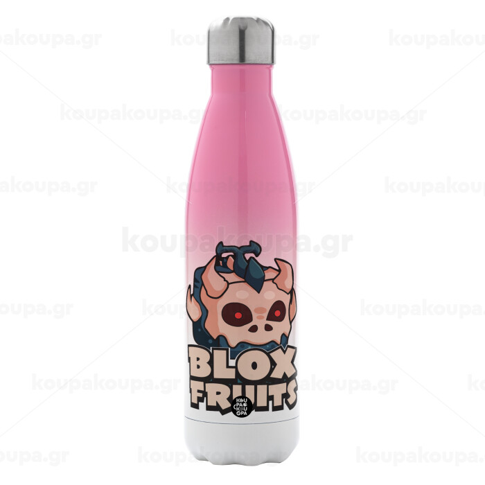 Roblox Blox Fruits, Μεταλλικό παγούρι θερμός Ροζ/Λευκό (Stainless steel), διπλού τοιχώματος, 500ml