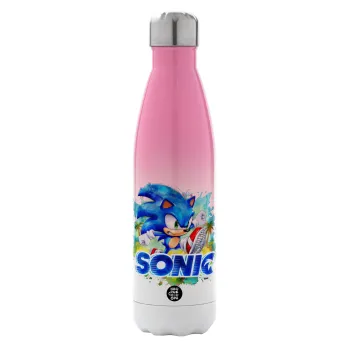 Σόνικ ο Σκαντζόχοιρος, Μεταλλικό παγούρι θερμός Ροζ/Λευκό (Stainless steel), διπλού τοιχώματος, 500ml