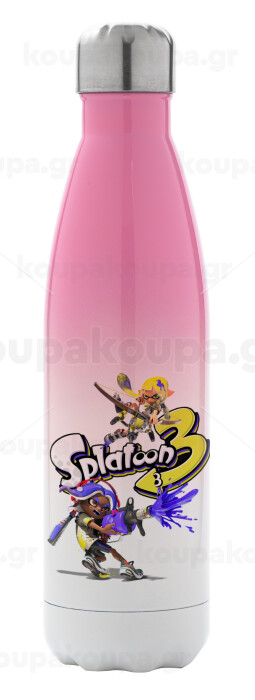Splatoon 3, Μεταλλικό παγούρι θερμός Ροζ/Λευκό (Stainless steel), διπλού τοιχώματος, 500ml