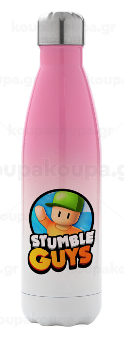Stumble Guys, Μεταλλικό παγούρι θερμός Ροζ/Λευκό (Stainless steel), διπλού τοιχώματος, 500ml