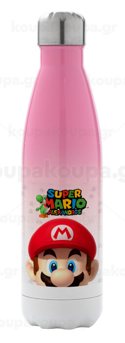Super mario head, Μεταλλικό παγούρι θερμός Ροζ/Λευκό (Stainless steel), διπλού τοιχώματος, 500ml