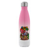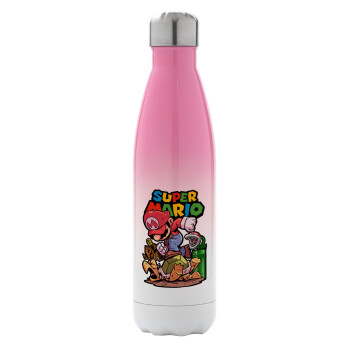 Super mario Jump, Μεταλλικό παγούρι θερμός Ροζ/Λευκό (Stainless steel), διπλού τοιχώματος, 500ml