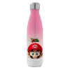 Super mario, Μεταλλικό παγούρι θερμός Ροζ/Λευκό (Stainless steel), διπλού τοιχώματος, 500ml