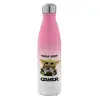 Yoda Best Gamer, Μεταλλικό παγούρι θερμός Ροζ/Λευκό (Stainless steel), διπλού τοιχώματος, 500ml