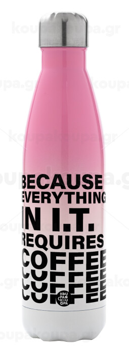 Because everything in I.T. requires coffee, Μεταλλικό παγούρι θερμός Ροζ/Λευκό (Stainless steel), διπλού τοιχώματος, 500ml
