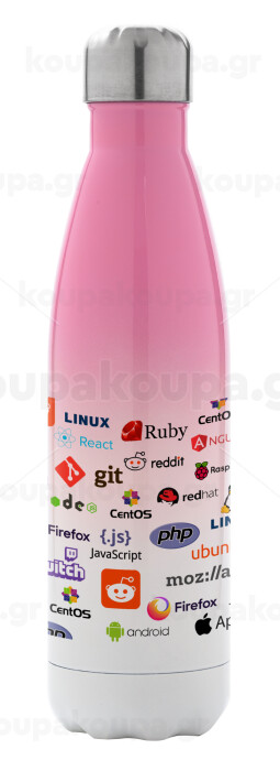 Tech logos, Μεταλλικό παγούρι θερμός Ροζ/Λευκό (Stainless steel), διπλού τοιχώματος, 500ml