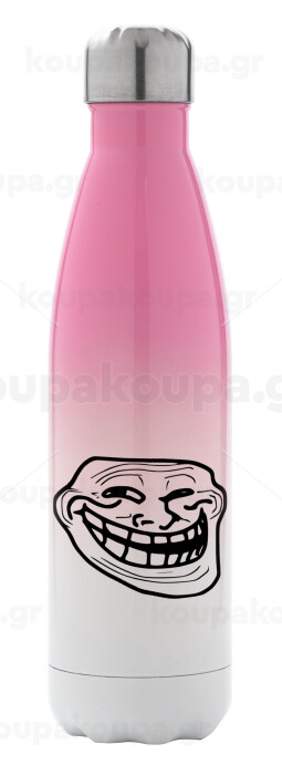 Troll face, Μεταλλικό παγούρι θερμός Ροζ/Λευκό (Stainless steel), διπλού τοιχώματος, 500ml