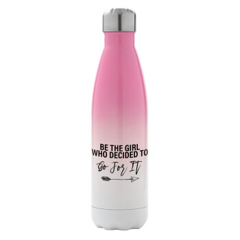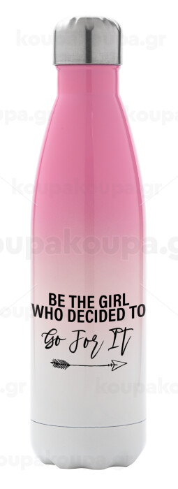 Be the girl who decided to, Μεταλλικό παγούρι θερμός Ροζ/Λευκό (Stainless steel), διπλού τοιχώματος, 500ml