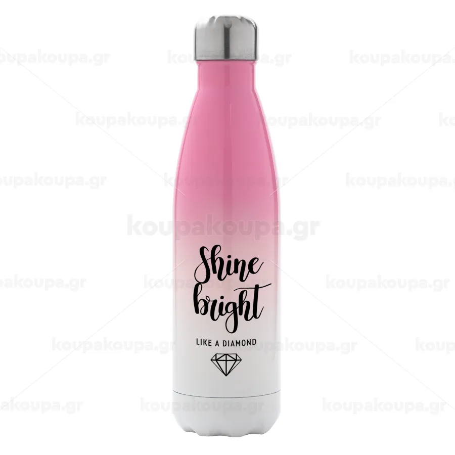 Bright, Shine like a Diamond, Μεταλλικό παγούρι θερμός Ροζ/Λευκό (Stainless steel), διπλού τοιχώματος, 500ml