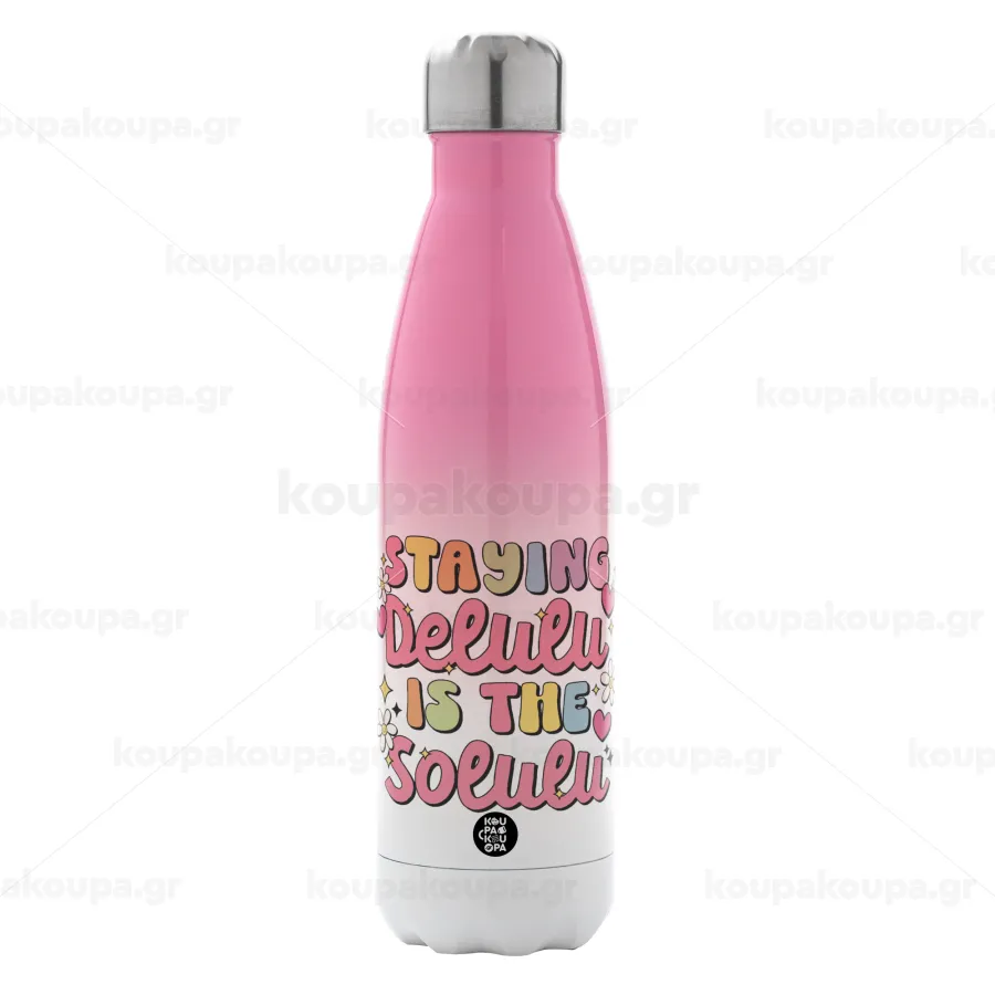 Delulu, Μεταλλικό παγούρι θερμός Ροζ/Λευκό (Stainless steel), διπλού τοιχώματος, 500ml