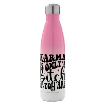 Karma is Only A Bitch if You Are, Μεταλλικό παγούρι θερμός Ροζ/Λευκό (Stainless steel), διπλού τοιχώματος, 500ml