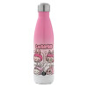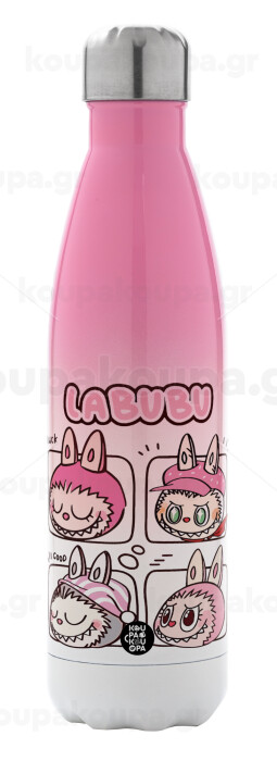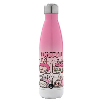 Labubu pink, Μεταλλικό παγούρι θερμός Ροζ/Λευκό (Stainless steel), διπλού τοιχώματος, 500ml