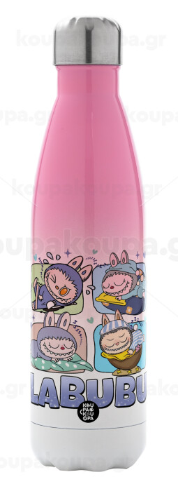 Labubu, Μεταλλικό παγούρι θερμός Ροζ/Λευκό (Stainless steel), διπλού τοιχώματος, 500ml