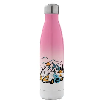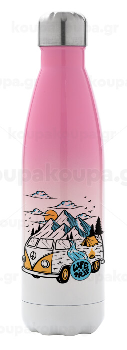 Life is a trip, Μεταλλικό παγούρι θερμός Ροζ/Λευκό (Stainless steel), διπλού τοιχώματος, 500ml