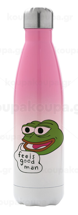 Pepe the frog, Μεταλλικό παγούρι θερμός Ροζ/Λευκό (Stainless steel), διπλού τοιχώματος, 500ml