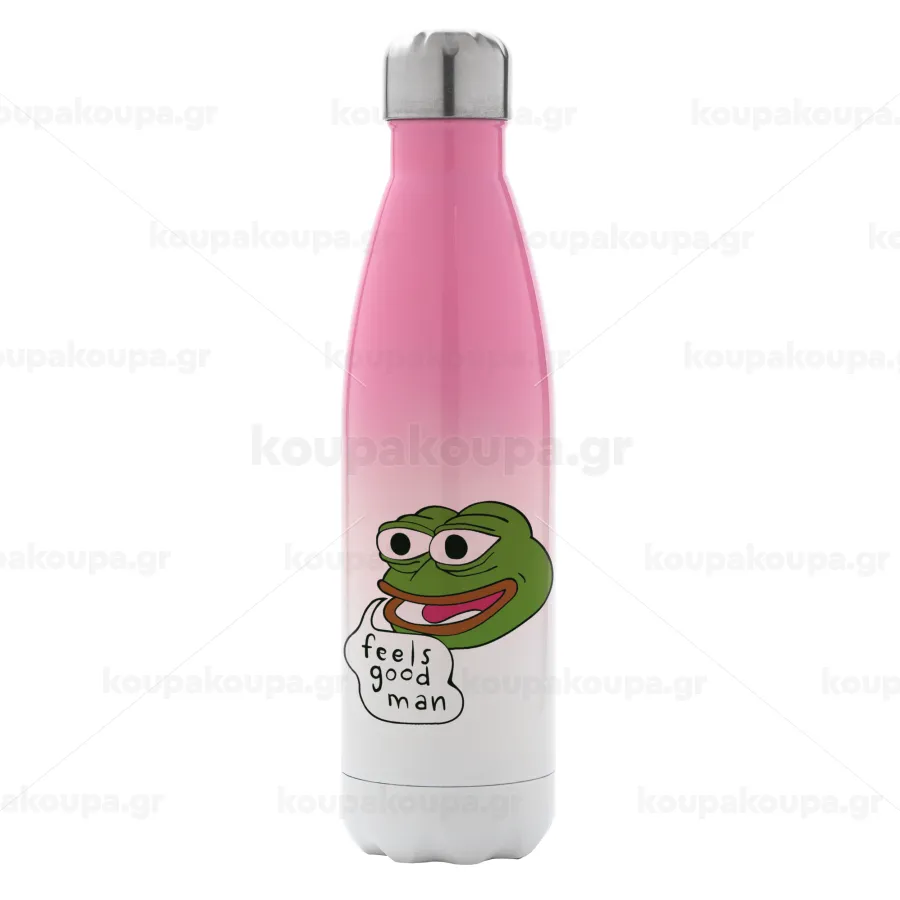Pepe the frog, Μεταλλικό παγούρι θερμός Ροζ/Λευκό (Stainless steel), διπλού τοιχώματος, 500ml