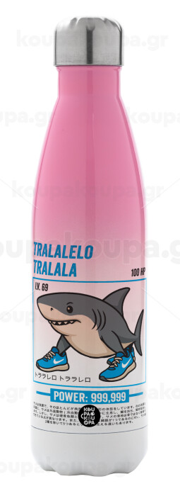 Tralalero Tralala, Μεταλλικό παγούρι θερμός Ροζ/Λευκό (Stainless steel), διπλού τοιχώματος, 500ml