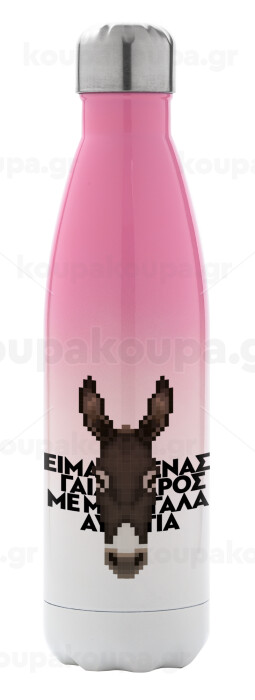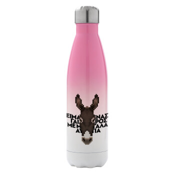 Είμαι ένας γάιδαρος με μεγάλα αυτιά., Μεταλλικό παγούρι θερμός Ροζ/Λευκό (Stainless steel), διπλού τοιχώματος, 500ml