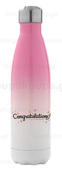 Congratulations, Μεταλλικό παγούρι θερμός Ροζ/Λευκό (Stainless steel), διπλού τοιχώματος, 500ml